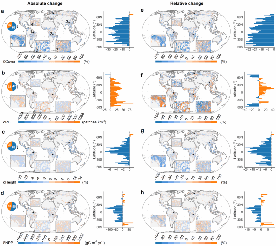 研究团队采用高分辨率遥感数据,创新构建了“逐网格环境匹配估算背景参照值(GEM-BR)”的方法体系,从森林覆盖率、冠层高度、净初级生产力(碳固持能力)和斑块密度(破碎化程度)四个核心指标,系统量化了道路对森林的影响。研究发现,与参照区域相比,道路1公里范围内森林覆盖率降低18.6%、冠层高度缩短2.7m、净初级生产力减少52.2 gC /m2/yr1,斑块密度增加23.0个/km2(图1);道路影响范围可延伸至5km,呈现明显的距离衰减效应,累计造成426万平方公里森林损失,相当于2020年全球森林面积的10.7%。从区域差异来看,全球南方(热带地区占54.8%)面临更为严重且持续加剧的森林退化(2000-2020年),而全球北方影响相对温和,部分区域出现森林恢复趋势;但这种恢复背后隐藏着“生态风险掩盖”问题——道路仍会破坏大型哺乳动物的迁徙廊道、引发生物入侵,且北方的森林恢复在一定程度上源于资源消费的“离岸化”,即把森林退化的压力转移到了治理水平较弱的全球南方。值得关注的是,89%的网格单元在不同指标上呈现出相反的长期变化趋势,这一现象凸显了单一依靠森林覆盖率进行评估的局限性。此外,研究还证实,道路相关的森林退化与当地人类活动强度密切相关,而全球自然保护区对这类退化的抑制能力存在明显不足(图2);同时,道路对森林影响的区域差异,本质上是由社会经济治理选择决定的,并非发展的必然结果,治理水平通过政策、执法力度和发展优先级,直接决定了道路对森林影响的程度与趋势。最后,本研究基于当前道路暴露风险与森林状态,绘制了全球森林优先保护区分布图。