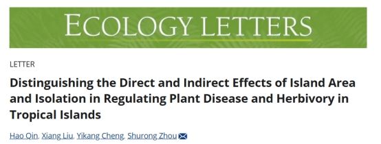 近日,海南大学生态学院周淑荣教授团队在《Ecology Letters》期刊在线发表题为《Distinguishing direct and indirect effects of island area and isolation on plant disease and herbivory in tropical islands》的研究成果。为岛屿生态保护中的生物胁迫响应预测提供了关键科学依据,对热带岛屿生物多样性保护与生态系统管理具有重要的理论与实践意义。